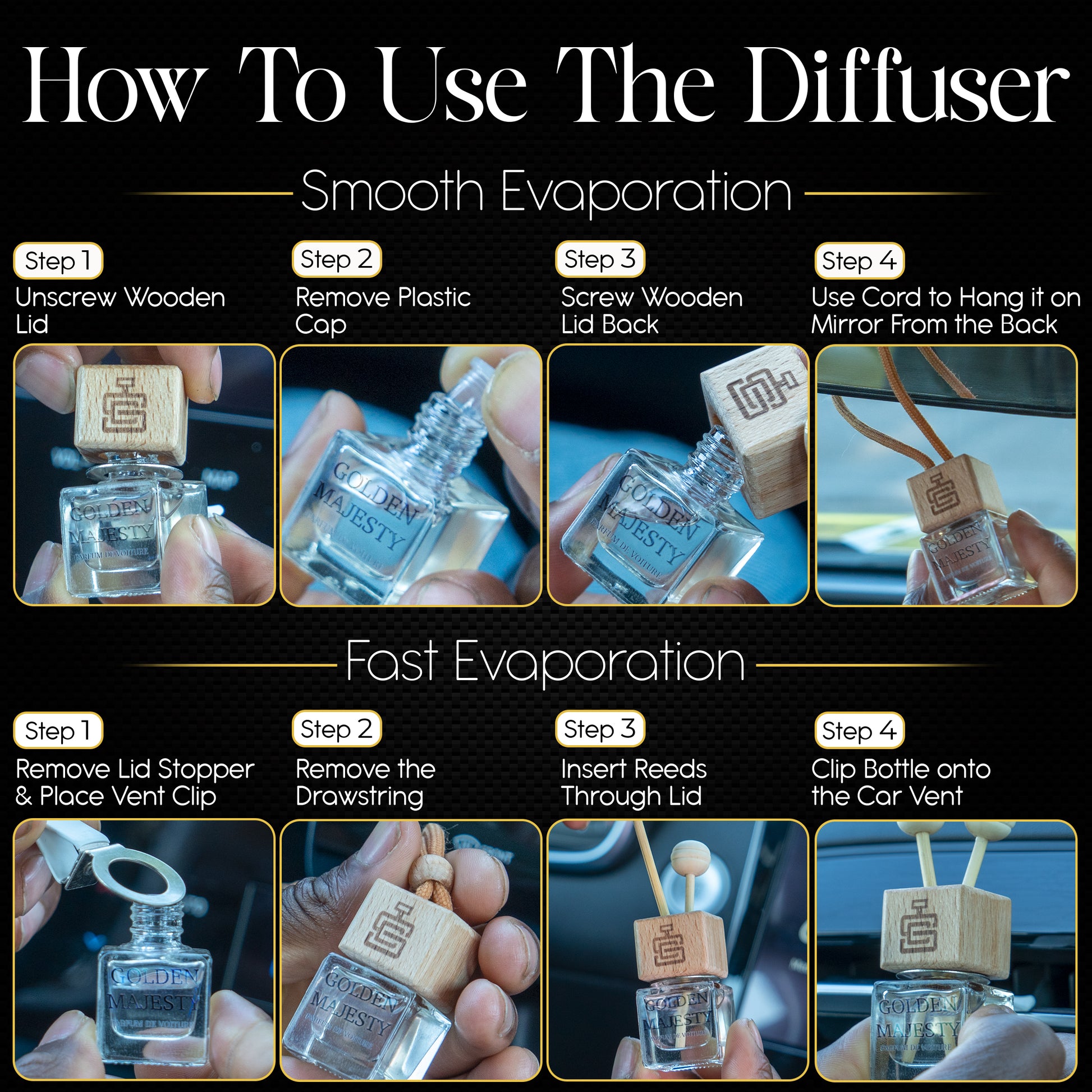 The Perfect Gift: Elegantly presented in a stylish, giftable box, our car air fresheners make an ideal gift for any discerning driver. Each package includes the signature scent, two diffuser sticks, vent clip, instruction manual, and optional hanging cord. Give the gift of long-lasting fragrance and elevate their driving experience to new heights.